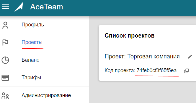 1. Название проекта (для Наполеон) или Код проекта (для AceTeam). Для AcePacer – указать AcePacer в теме письма.